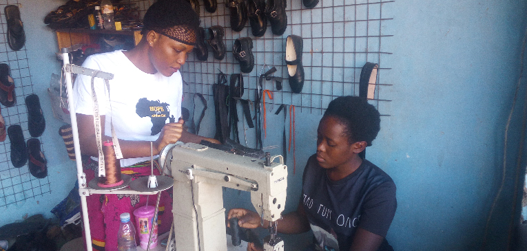 We are proudly helping youths single mothers in acquiring different technical skills in sewing clothes of different fabrics like; cotton and Bitengi, catering where they learn how to prepare different delicacies and dishes, and also mending shoes fo different materials.